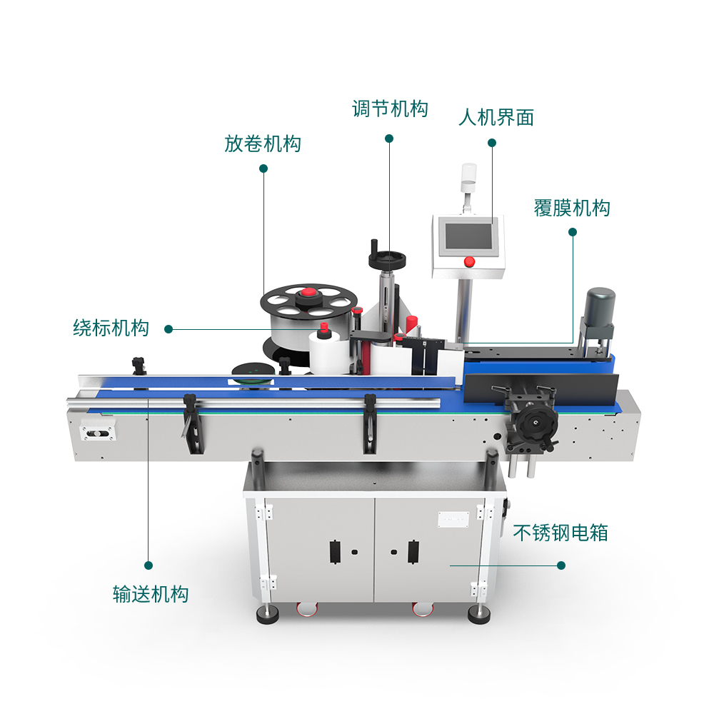 ◆標簽重合度高,標帶繞行采用糾偏機構,標帶不走偏,貼標部位x/y/z三個方向以及傾斜度共八個自由度可調,調整無
